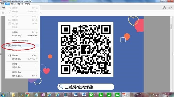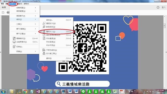 2.打開檔案-->檢視-->1:1實際大小-->PDF 拍攝快照 -->貼到小畫家存檔(貼到LINE給我)